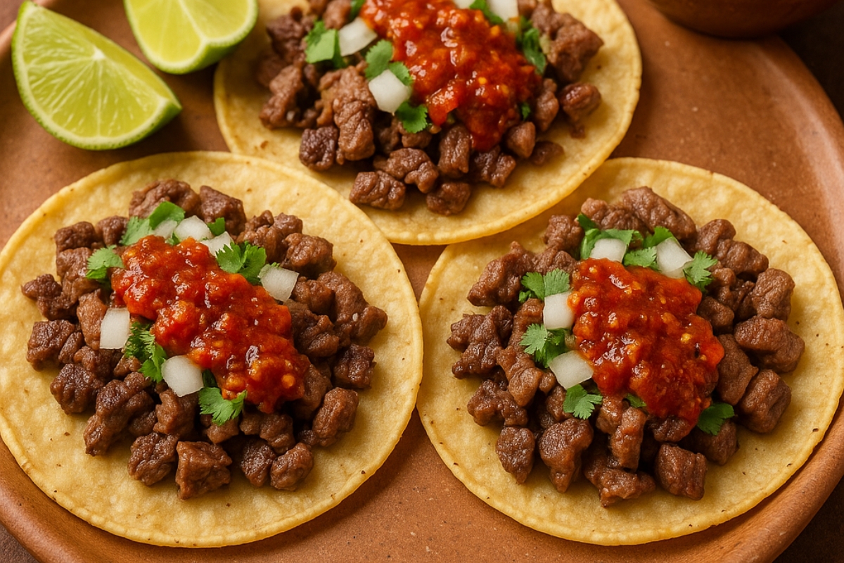 Tacos de arrachera con Salsa de Chile de Árbol Tamaba
